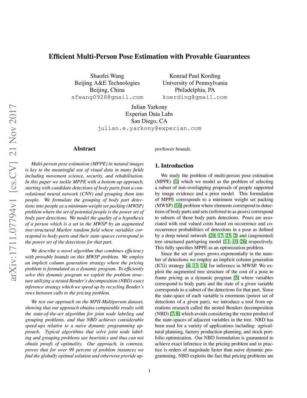 Efficient Multi-Person Pose Estimation with Provable Guarantees