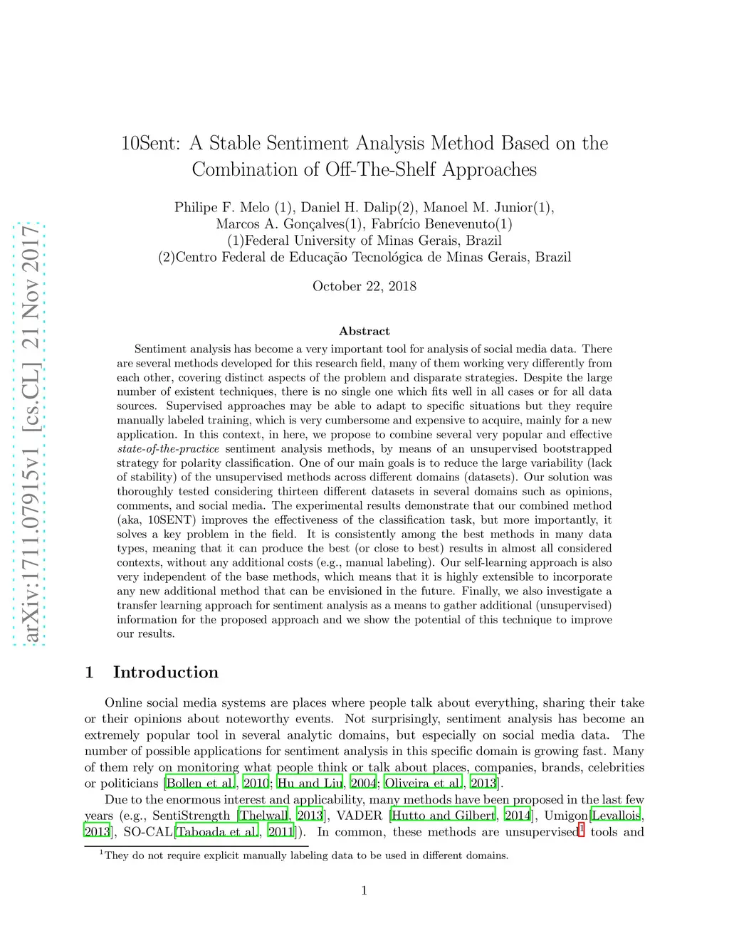 10Sent: A Stable Sentiment Analysis Method Based on the Combination of