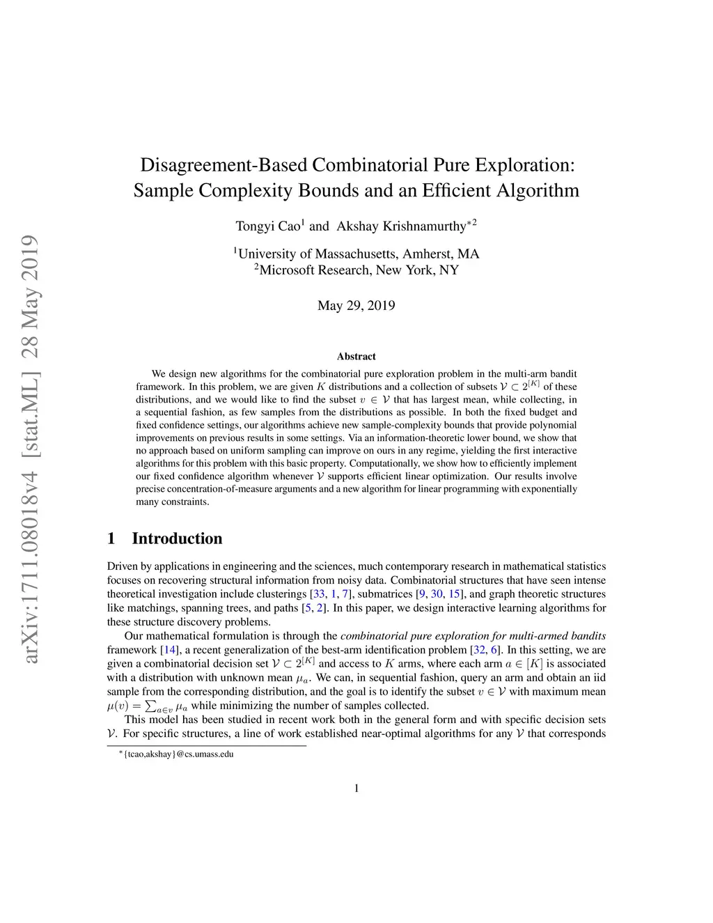Disagreement-Based Combinatorial Pure Exploration: Sample Complexity
