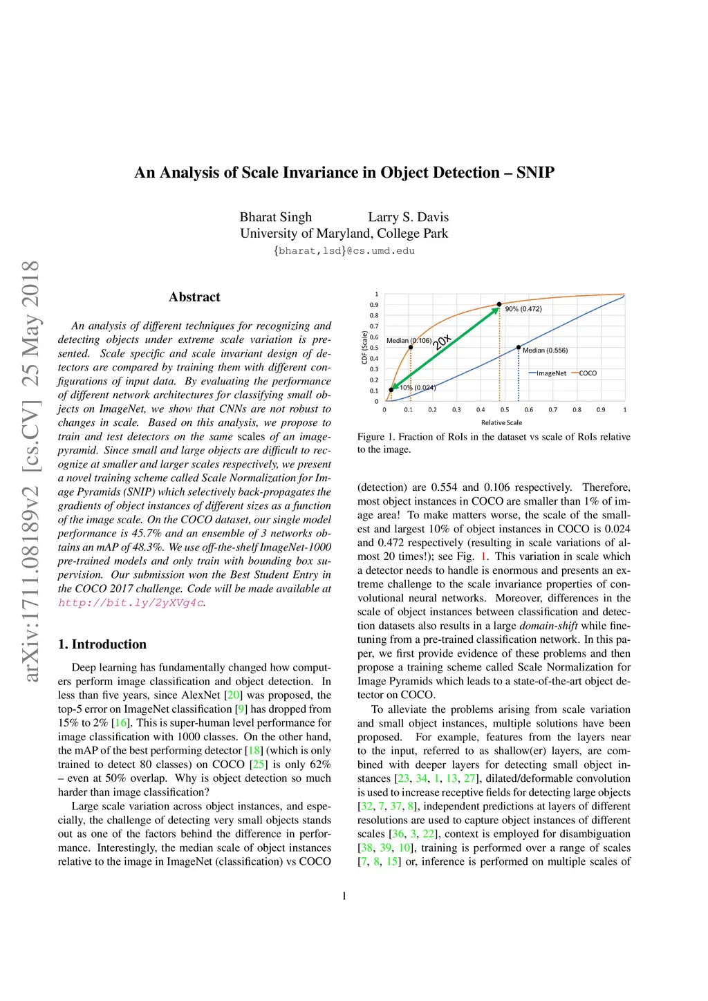 An Analysis of Scale Invariance in Object Detection - SNIP