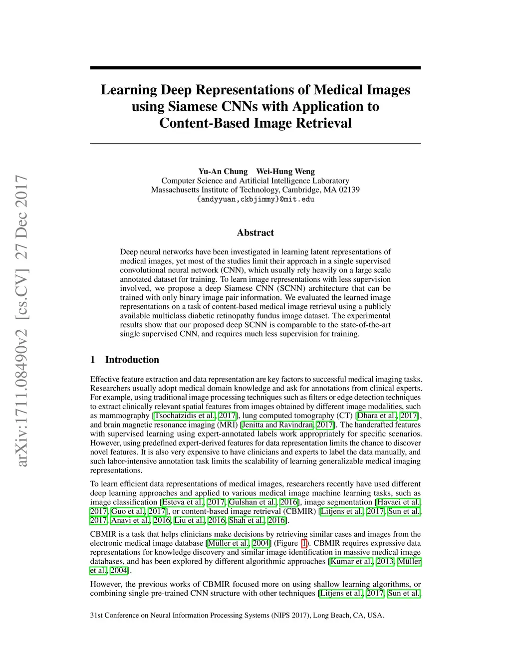 Learning Deep Representations of Medical Images using Siamese CNNs with