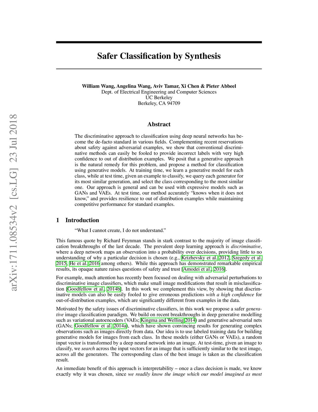 Safer Classification by Synthesis