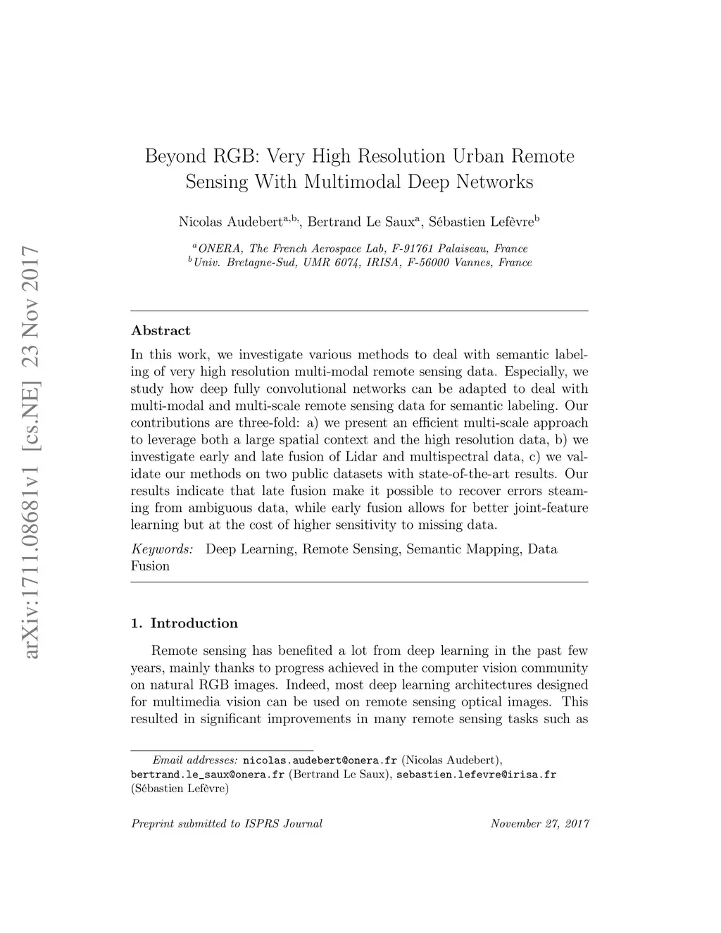 Beyond RGB: Very High Resolution Urban Remote Sensing With Multimodal