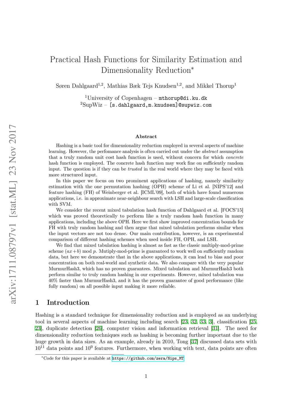 Practical Hash Functions for Similarity Estimation and Dimensionality