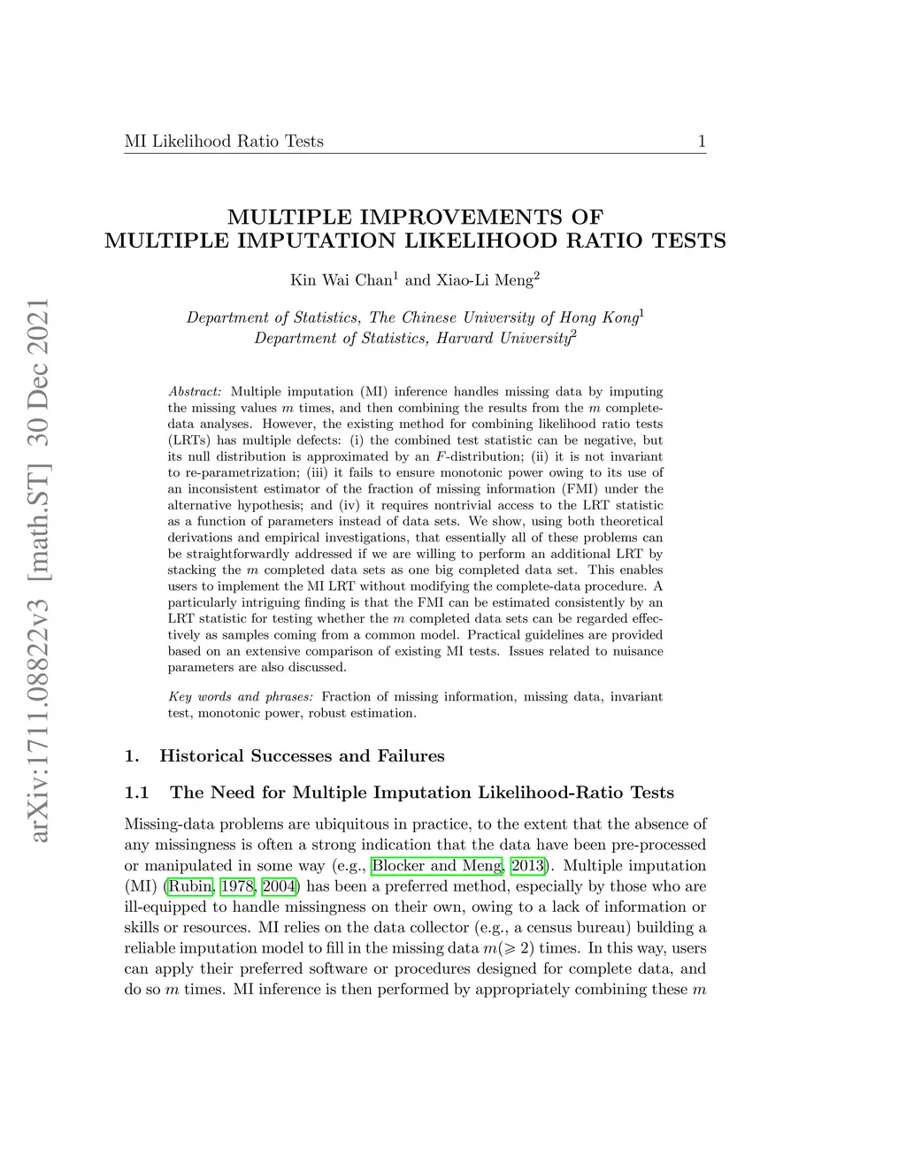 Multiple imputation (MI) inference handles missing data by imputing the missing values times, and then combining the results from the complete-data analyses. However, the existing method for combining likelihood ratio tests (LRTs) has multiple defects: (i) the combined test statistic can be negative, but its null distribution is approximated by an -distribution; (ii) it is not invariant to re-parametrization; (iii) it fails to ensure monotonic power owing to its use of an inconsistent estimator of the fraction of missing information (FMI) under the alternative hypothesis; and (iv) it requires nontrivial access to the LRT statistic as a function of parameters instead of data sets. We show, using both theoretical derivations and empirical investigations, that essentially all of these problems can be straightforwardly addressed if we are willing to perform an additional LRT by stacking the completed data sets as one big completed data set. This enables users to implement the MI LRT without modifying the complete-data procedure. A particularly intriguing finding is that the FMI can be estimated consistently by an LRT statistic for testing whether the completed data sets can be regarded effectively as samples coming from a common model. Practical guidelines are provided based on an extensive comparison of existing MI tests. Issues related to nuisance parameters are also discussed.