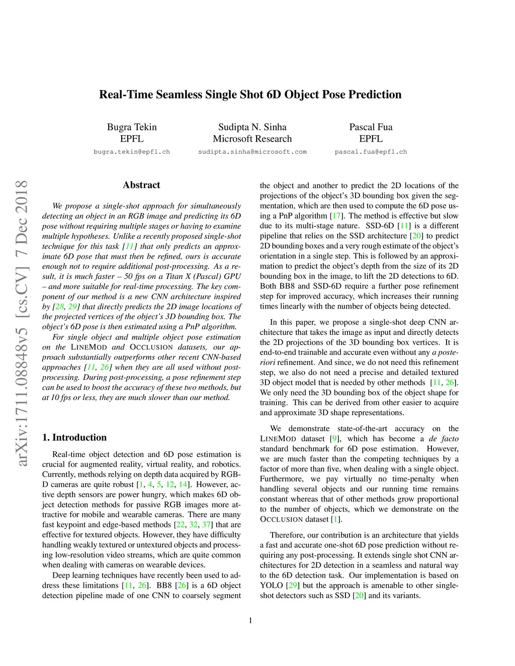 Real-Time Seamless Single Shot 6D Object Pose Prediction