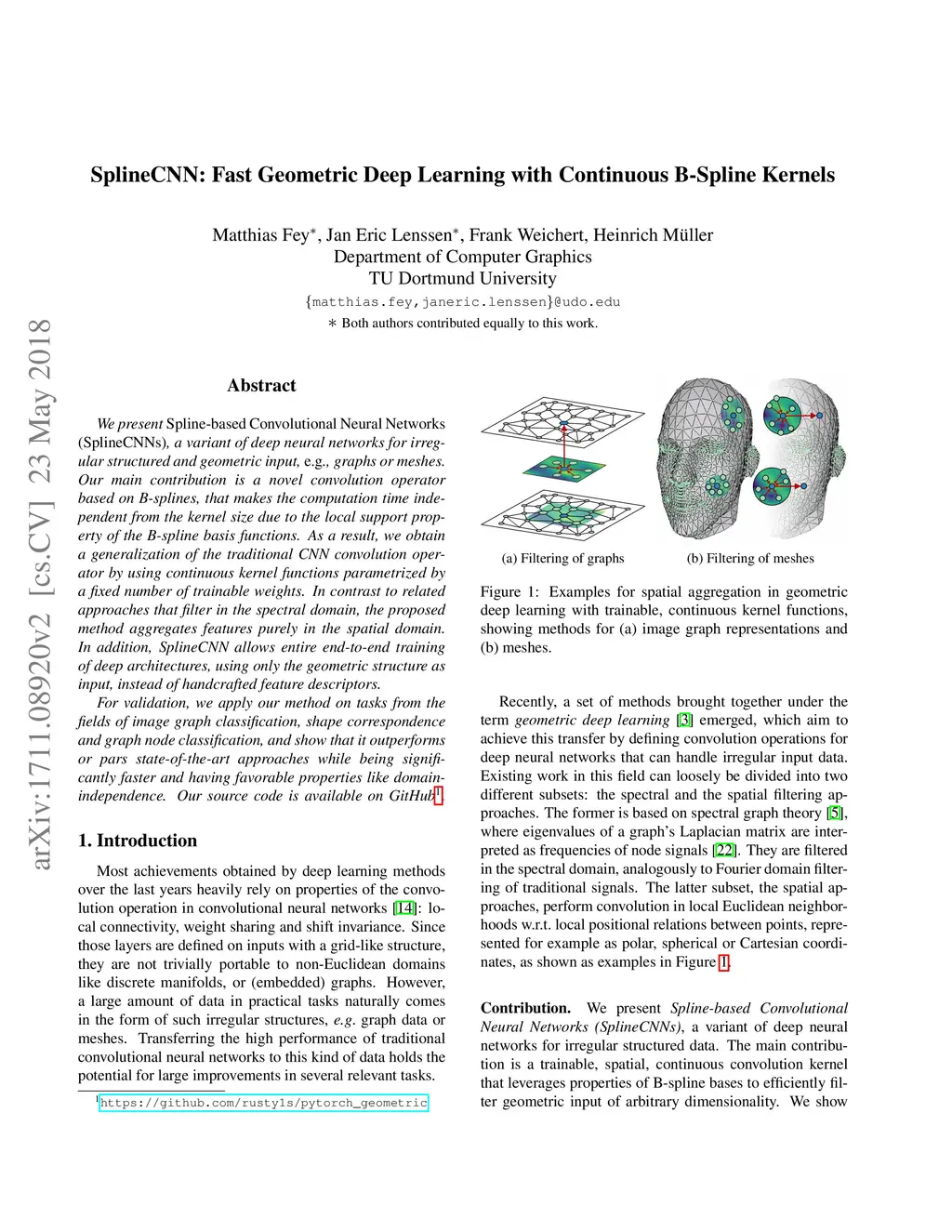 SplineCNN: Fast Geometric Deep Learning with Continuous B-Spline Kernels