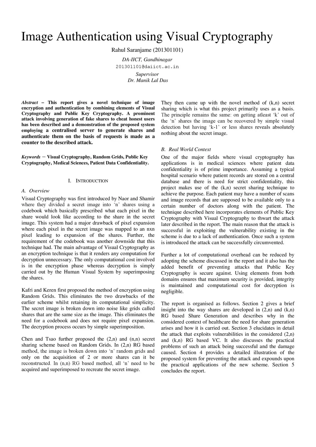 This report gives a novel technique of image encryption and authentication by combining elements of Visual Cryptography and Public Key Cryptography. A prominent attack involving generation of fake shares to cheat honest users has been described and a demonstration of the proposed system employing a centralised server to generate shares and authenticate them on the basis of requests is made as a counter to the described attack.