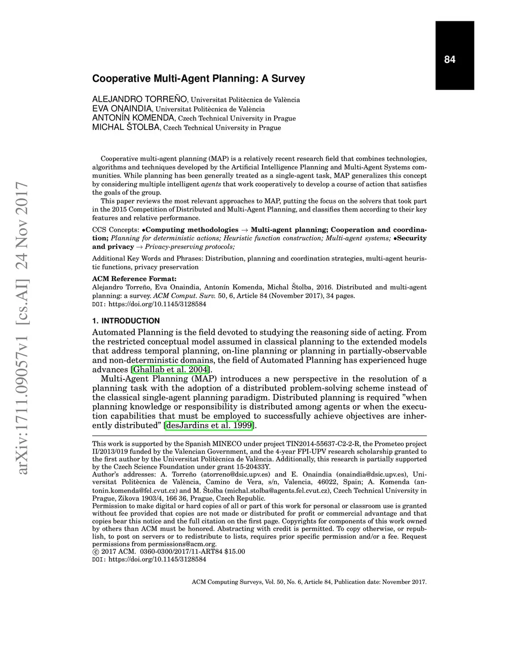 Cooperative Multi-Agent Planning: A Survey