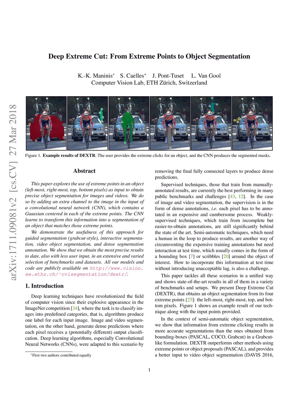 Deep Extreme Cut: From Extreme Points to Object Segmentation