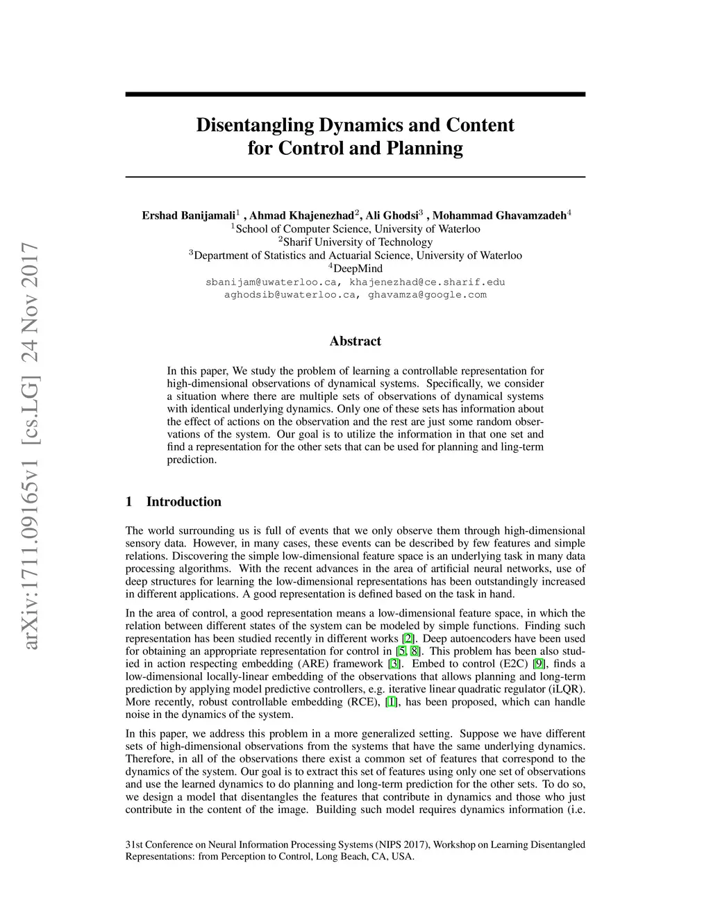 In this paper, We study the problem of learning a controllable representation for high-dimensional observations of dynamical systems. Specifically, we consider a situation where there are multiple sets of observations of dynamical systems with identical underlying dynamics. Only one of these sets has information about the effect of actions on the observation and the rest are just some random observations of the system. Our goal is to utilize the information in that one set and find a representation for the other sets that can be used for planning and ling-term prediction.