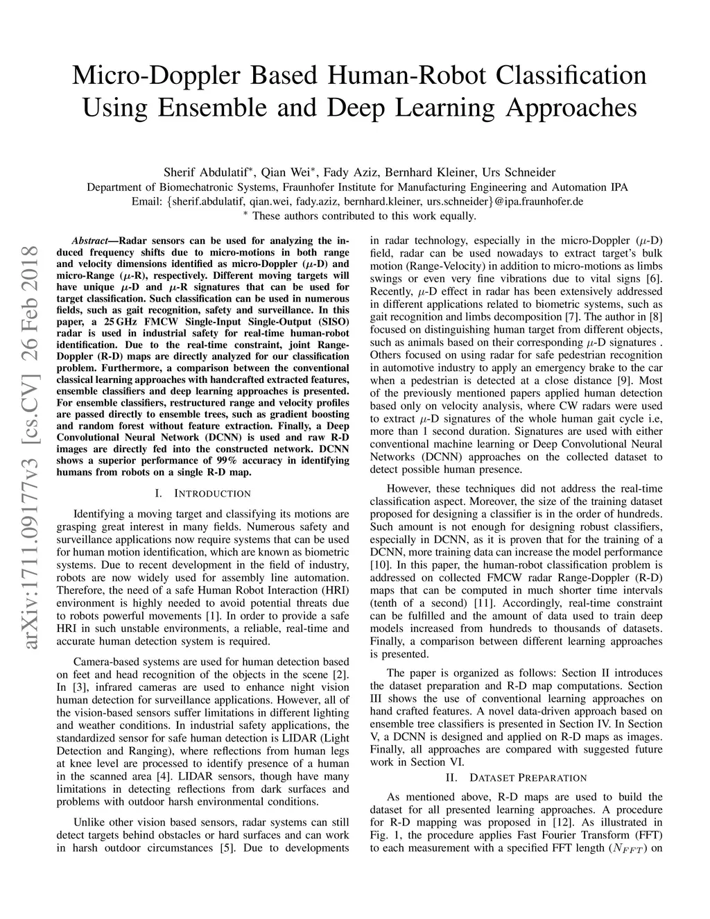 Micro-Doppler Based Human-Robot Classification Using Ensemble and Deep