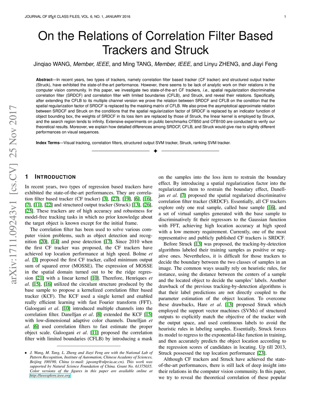 In recent years, two types of trackers, namely correlation filter based tracker (CF tracker) and structured output tracker (Struck), have exhibited the state-of-the-art performance. However, there seems to be lack of analytic work on their relations in the computer vision community. In this paper, we investigate two state-of-the-art CF trackers, i.e., spatial regularization discriminative correlation filter (SRDCF) and correlation filter with limited boundaries (CFLB), and Struck, and reveal their relations. Specifically, after extending the CFLB to its multiple channel version we prove the relation between SRDCF and CFLB on the condition that the spatial regularization factor of SRDCF is replaced by the masking matrix of CFLB. We also prove the asymptotical approximate relation between SRDCF and Struck on the conditions that the spatial regularization factor of SRDCF is replaced by an indicator function of object bounding box, the weights of SRDCF in its loss item are replaced by those of Struck, the linear kernel is employed by Struck, and the search region tends to infinity. Extensive experiments on public benchmarks OTB50 and OTB100 are conducted to verify our theoretical results. Moreover, we explain how detailed differences among SRDCF, CFLB, and Struck would give rise to slightly different performances on visual sequences