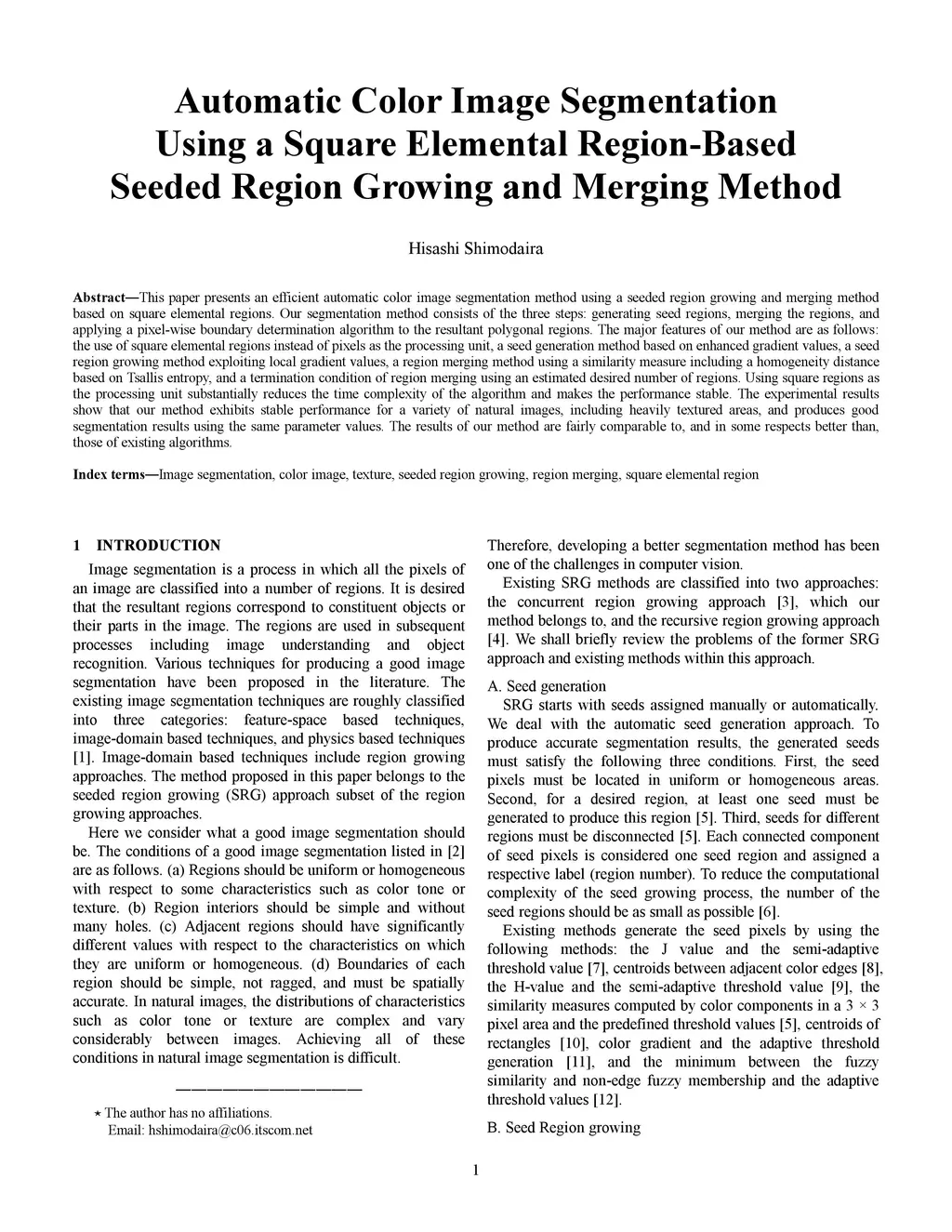Seeded Region Growing and Merging Method
