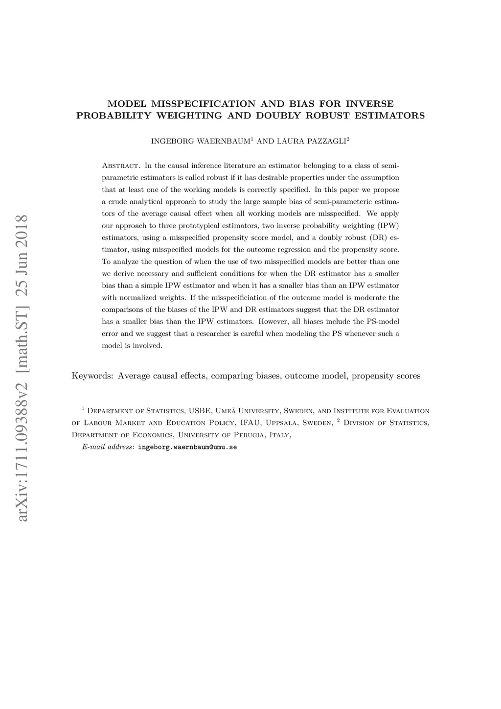 In the causal inference literature an estimator belonging to a class of semi-parametric estimators is called robust if it has desirable properties under the assumption that at least one of the working models is correctly specified. In this paper we propose a crude analytical approach to study the large sample bias of semi-parameteric estimators of the average causal effect when all working models are misspecified. We apply our approach to three prototypical estimators, two inverse probability weighting (IPW) estimators, using a misspecified propensity score model, and a doubly robust (DR) estimator, using misspecified models for the outcome regression and the propensity score. To analyze the question of when the use of two misspecified models are better than one we derive necessary and sufficient conditions for when the DR estimator has a smaller bias than a simple IPW estimator and when it has a smaller bias than an IPW estimator with normalized weights. If the misspecificiation of the outcome model is moderate the comparisons of the biases of the IPW and DR estimators suggest that the DR estimator has a smaller bias than the IPW estimators. However, all biases include the PS-model error and we suggest that a researcher is careful when modeling the PS whenever such a model is involved.