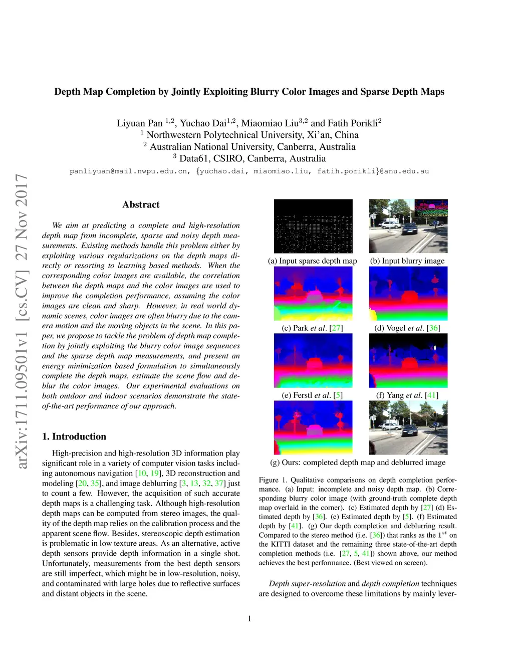 Depth Map Completion by Jointly Exploiting Blurry Color Images and