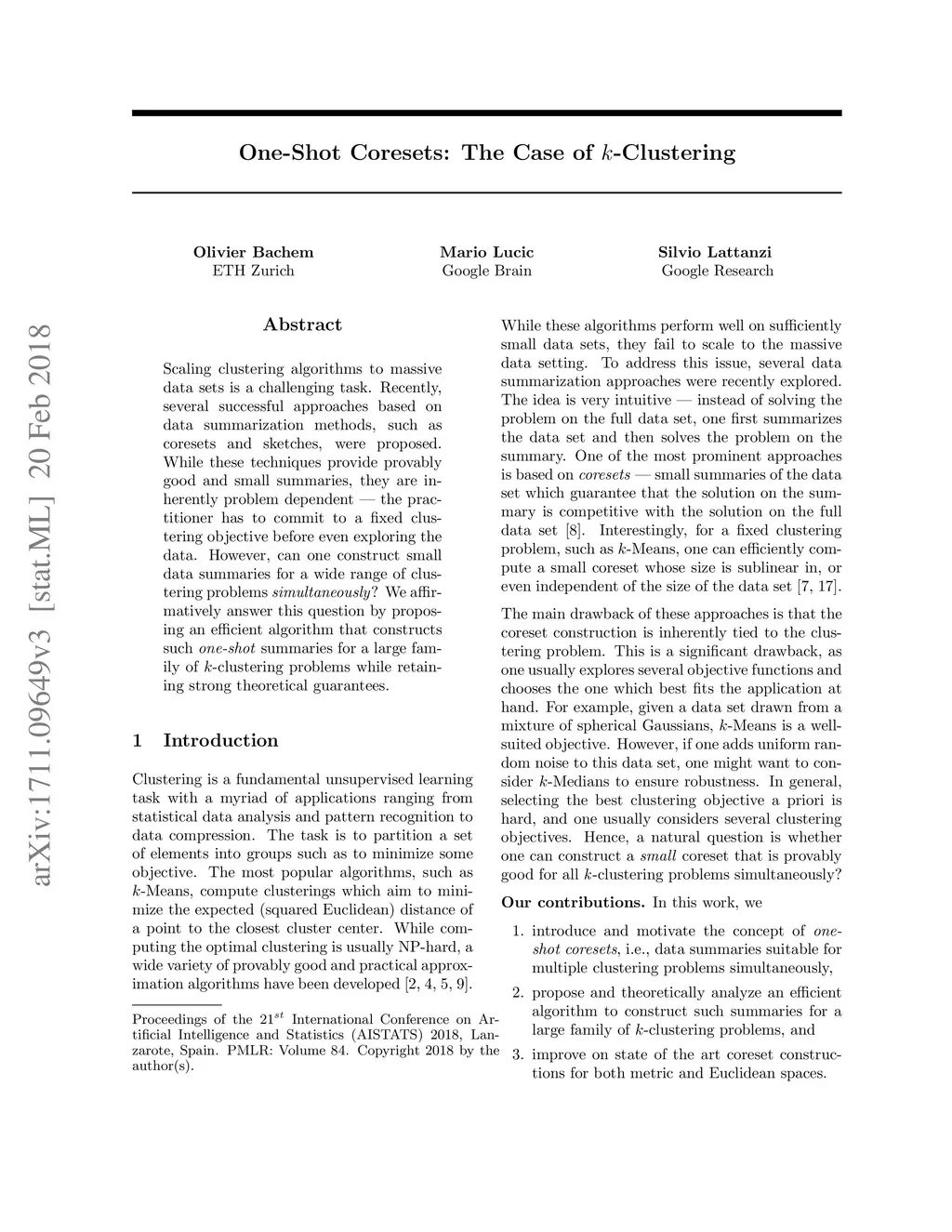 One-Shot Coresets: The Case of k-Clustering