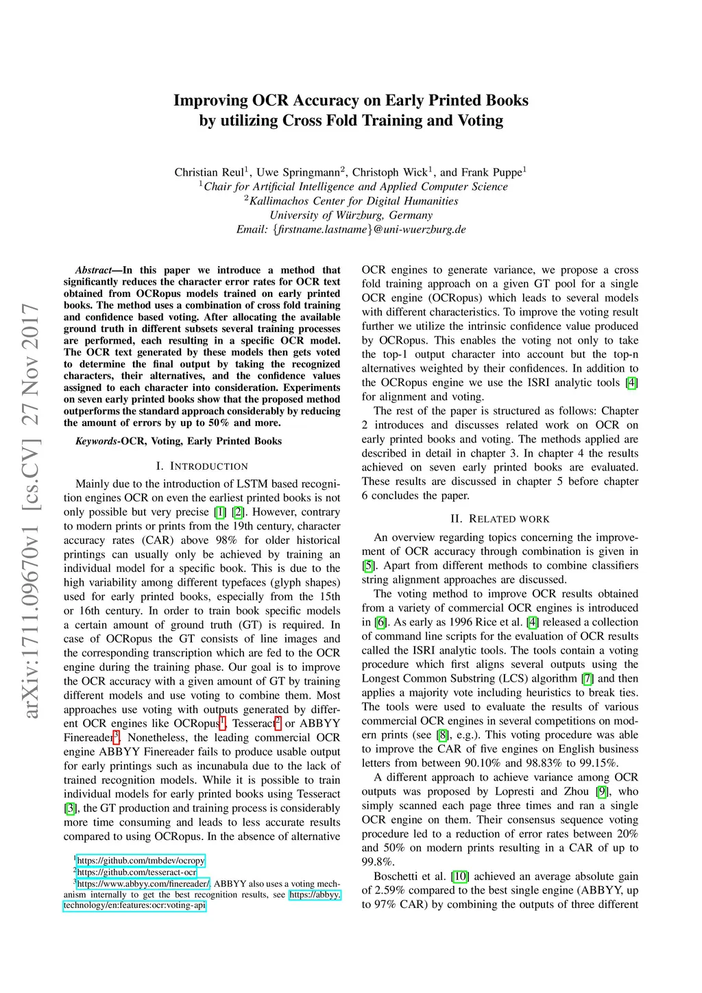 Improving OCR Accuracy on Early Printed Books by utilizing Cross Fold