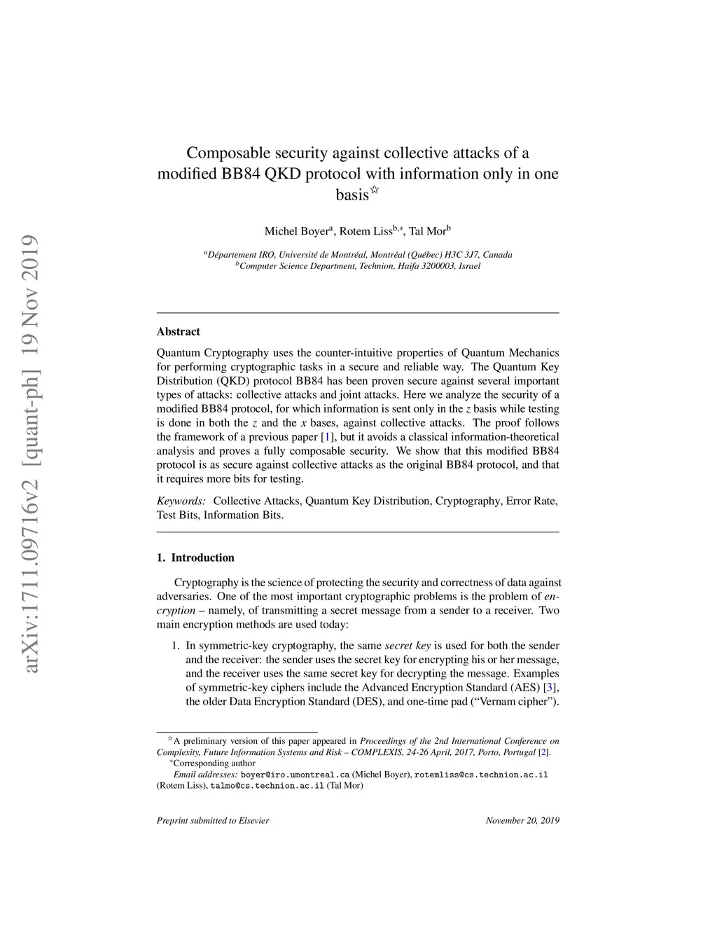 Quantum Cryptography uses the counter-intuitive properties of Quantum Mechanics for performing cryptographic tasks in a secure and reliable way. The Quantum Key Distribution (QKD) protocol BB84 has been proven secure against several important types of attacks: collective attacks and joint attacks. Here we analyze the security of a modified BB84 protocol, for which information is sent only in the z basis while testing is done in both the z and the x bases, against collective attacks. The proof follows the framework of a previous paper (Boyer, Gelles, and Mor, 2009), but it avoids a classical information-theoretical analysis and proves a fully composable security. We show that this modified BB84 protocol is as secure against collective attacks as the original BB84 protocol, and that it requires more bits for testing.