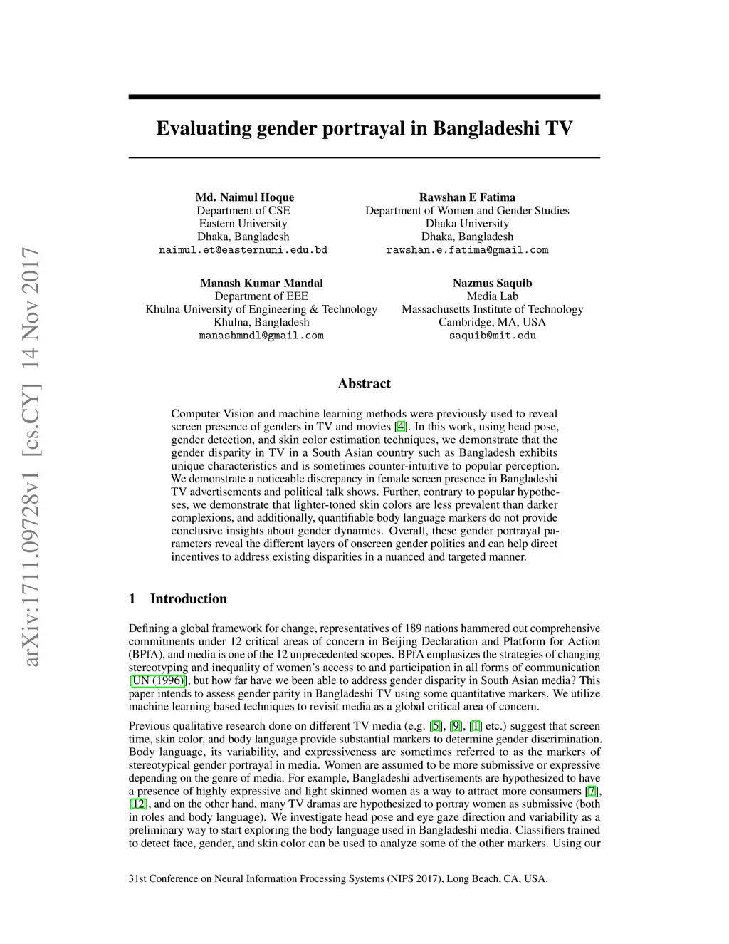 Evaluating gender portrayal in Bangladeshi TV