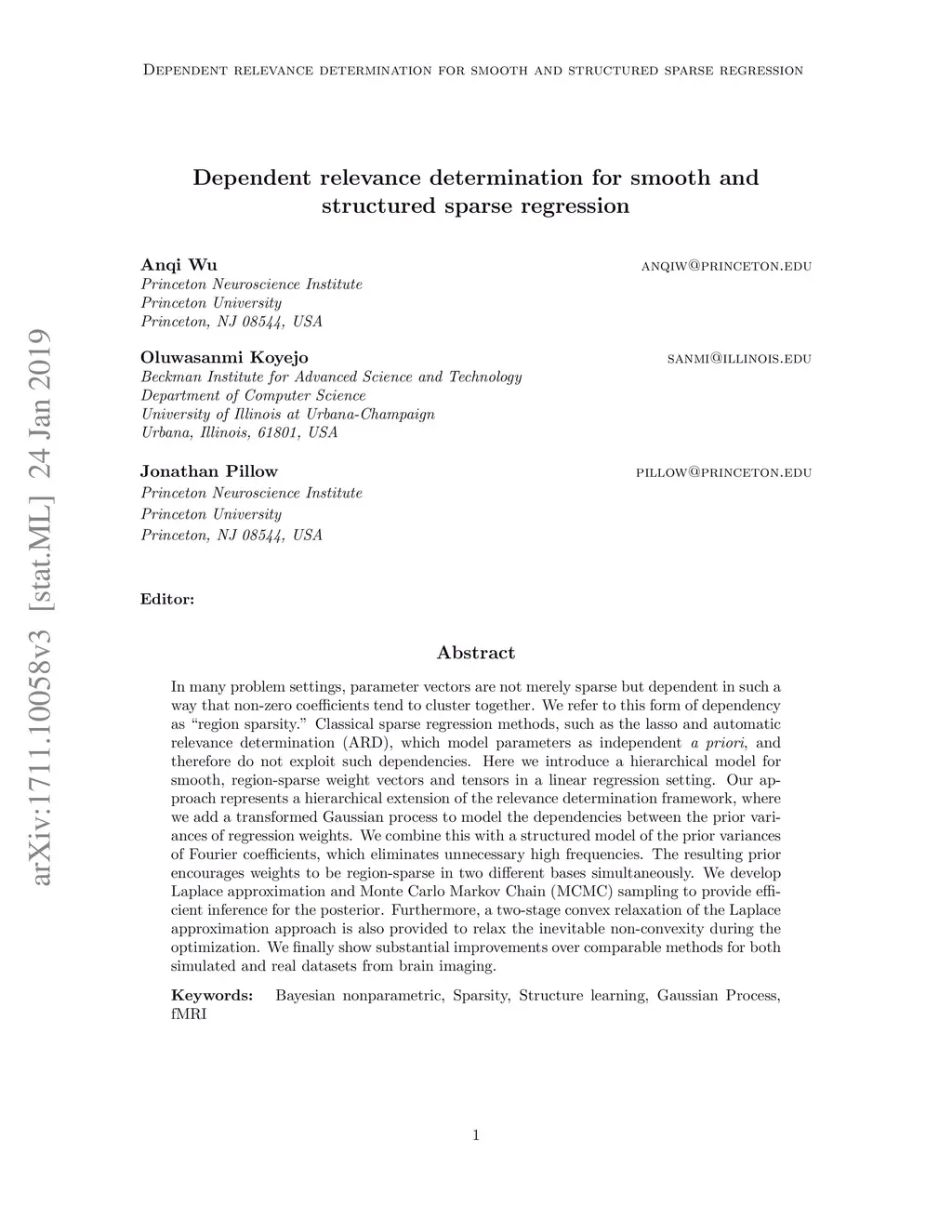Dependent relevance determination for smooth and structured sparse
