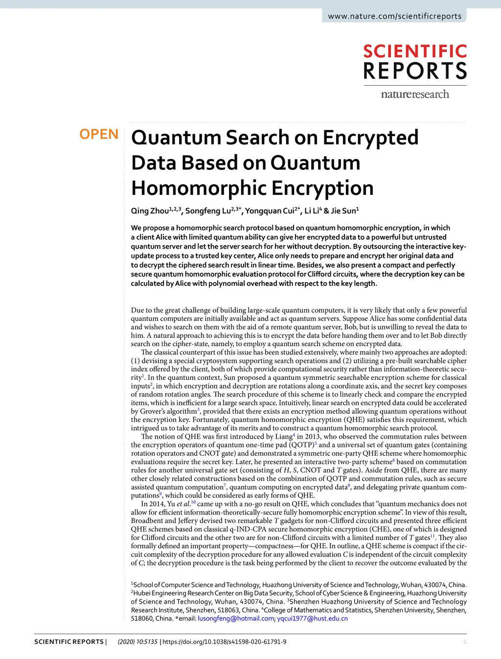 Quantum Search on Encrypted Data Based on Quantum Homomorphic Encryption