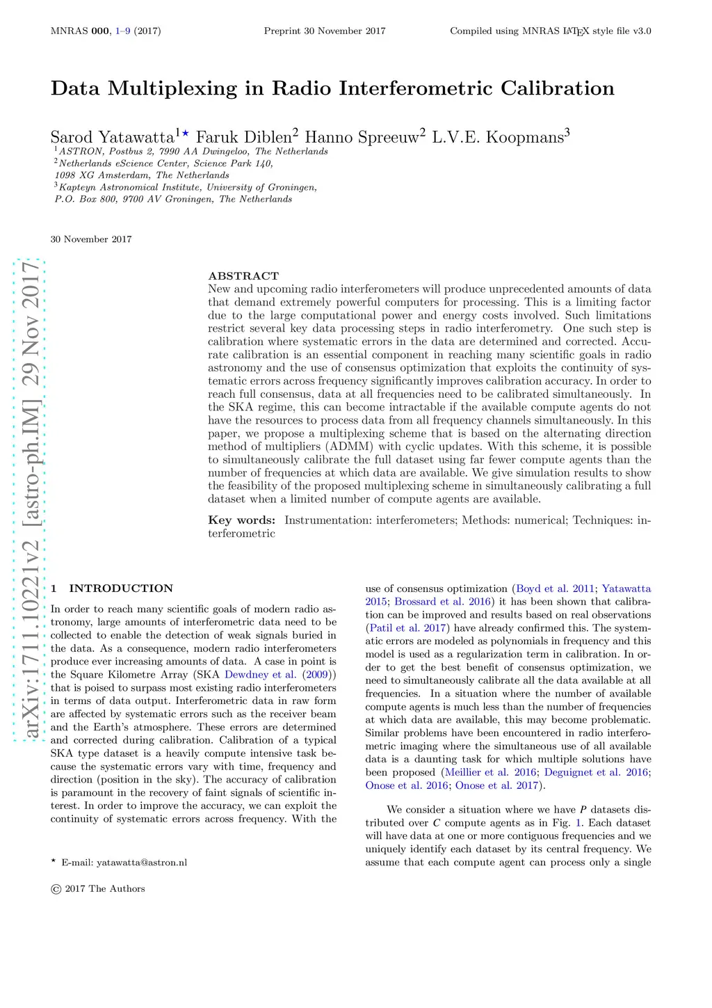 New and upcoming radio interferometers will produce unprecedented amounts of data that demand extremely powerful computers for processing. This is a limiting factor due to the large computational power and energy costs involved. Such limitations restrict several key data processing steps in radio interferometry. One such step is calibration where systematic errors in the data are determined and corrected. Accurate calibration is an essential component in reaching many scientific goals in radio astronomy and the use of consensus optimization that exploits the continuity of systematic errors across frequency significantly improves calibration accuracy. In order to reach full consensus, data at all frequencies need to be calibrated simultaneously. In the SKA regime, this can become intractable if the available compute agents do not have the resources to process data from all frequency channels simultaneously. In this paper, we propose a multiplexing scheme that is based on the alternating direction method of multipliers (ADMM) with cyclic updates. With this scheme, it is possible to simultaneously calibrate the full dataset using far fewer compute agents than the number of frequencies at which data are available. We give simulation results to show the feasibility of the proposed multiplexing scheme in simultaneously calibrating a full dataset when a limited number of compute agents are available.
