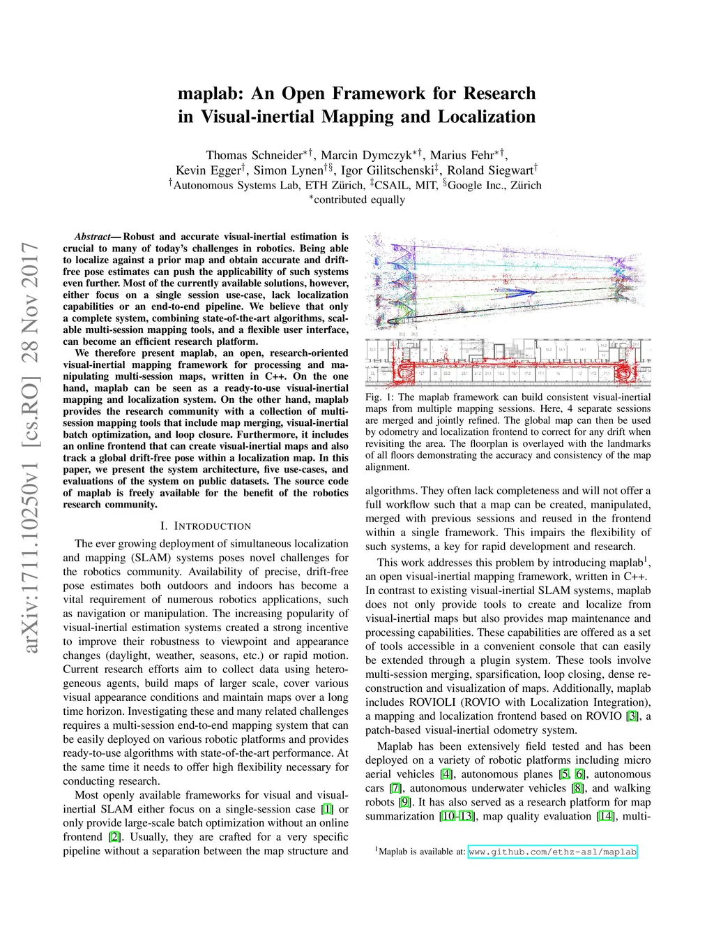 maplab: An Open Framework for Research in Visual-inertial Mapping and