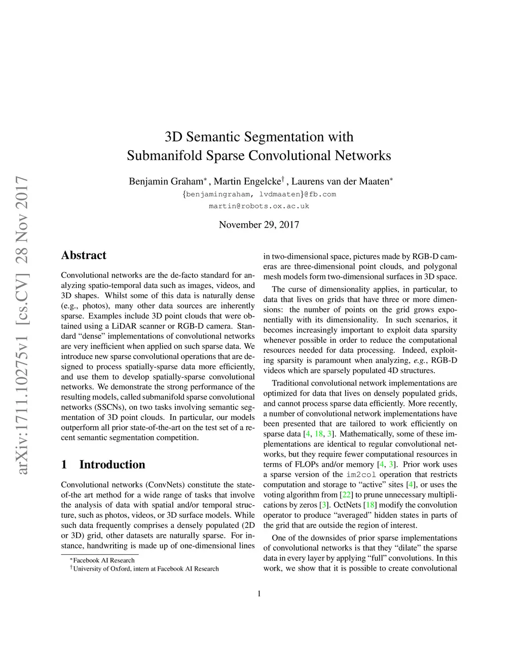 3D Semantic Segmentation with Submanifold Sparse Convolutional Networks