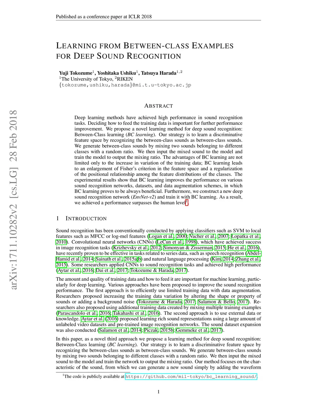 Learning from Between-class Examples for Deep Sound Recognition