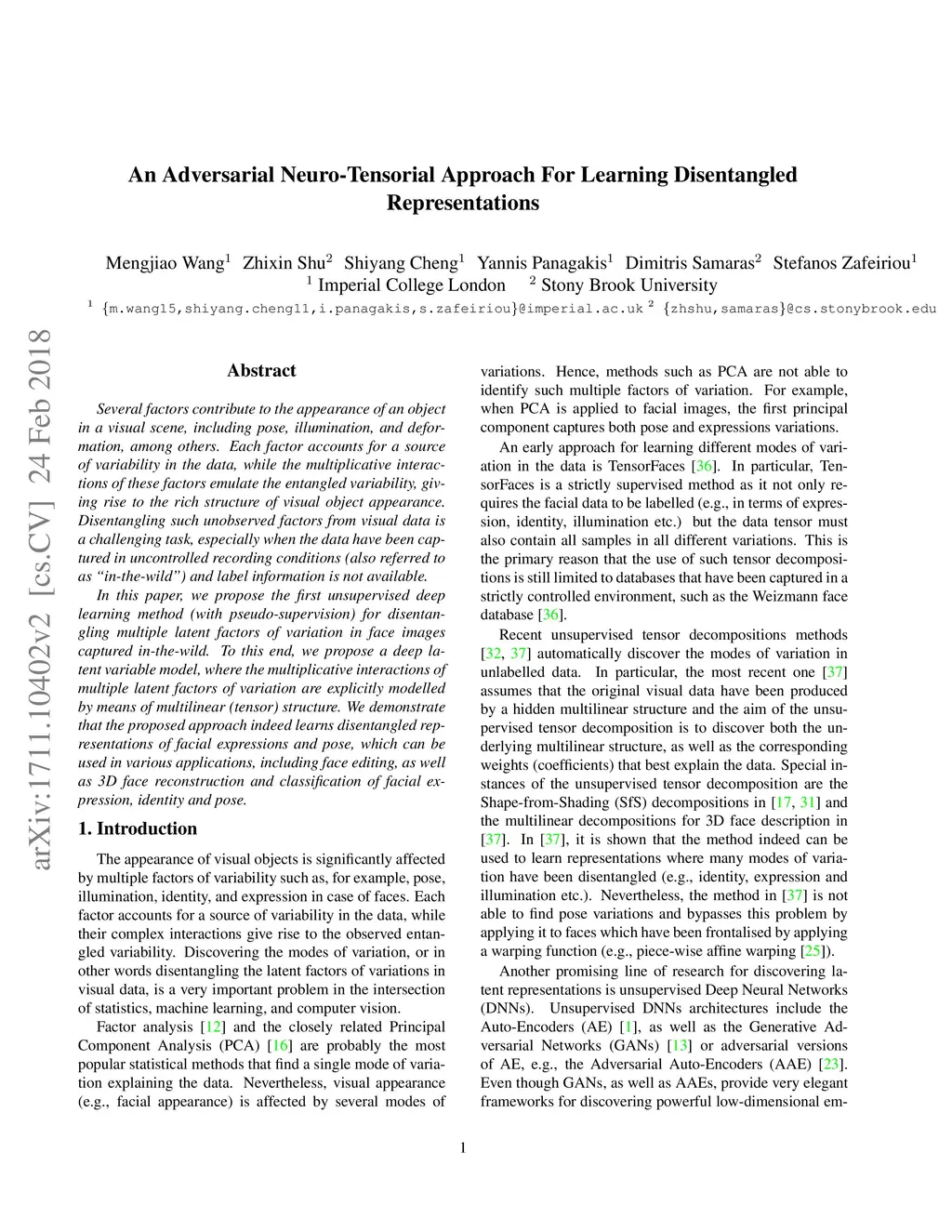 An Adversarial Neuro-Tensorial Approach For Learning Disentangled