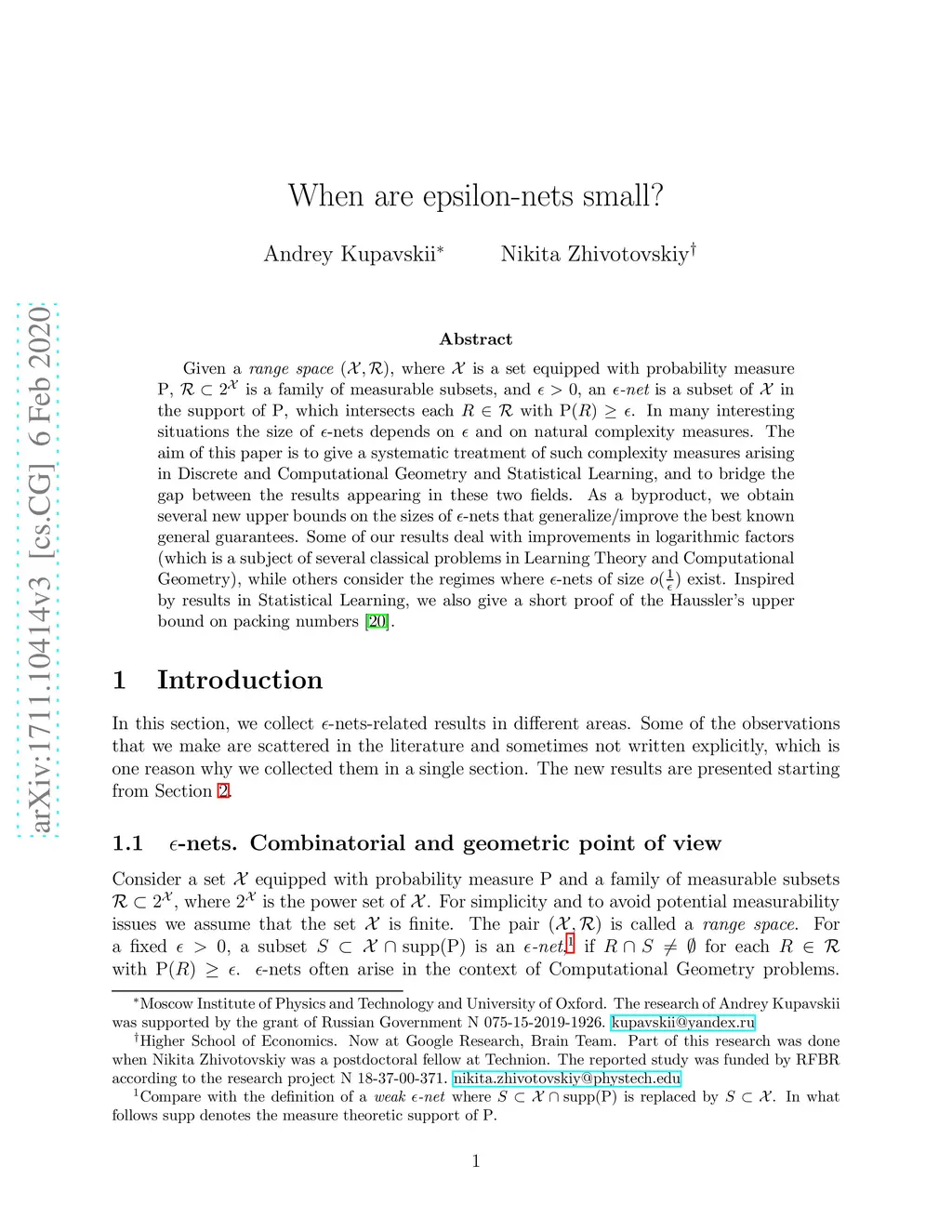 In many interesting situations the size of epsilon-nets depends only on together with different complexity measures. The aim of this paper is to give a systematic treatment of such complexity measures arising in Discrete and Computational Geometry and Statistical Learning, and to bridge the gap between the results appearing in these two fields. As a byproduct, we obtain several new upper bounds on the sizes of epsilon-nets that generalize/improve the best known general guarantees. In particular, our results work with regimes when small epsilon-nets of size exist, which are not usually covered by standard upper bounds. Inspired by results in Statistical Learning we also give a short proof of the Haussler's upper bound on packing numbers.
