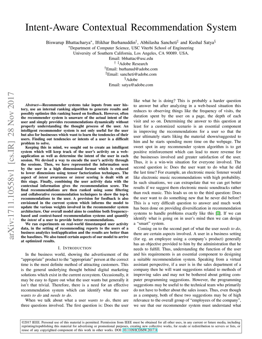 Intent-Aware Contextual Recommendation System