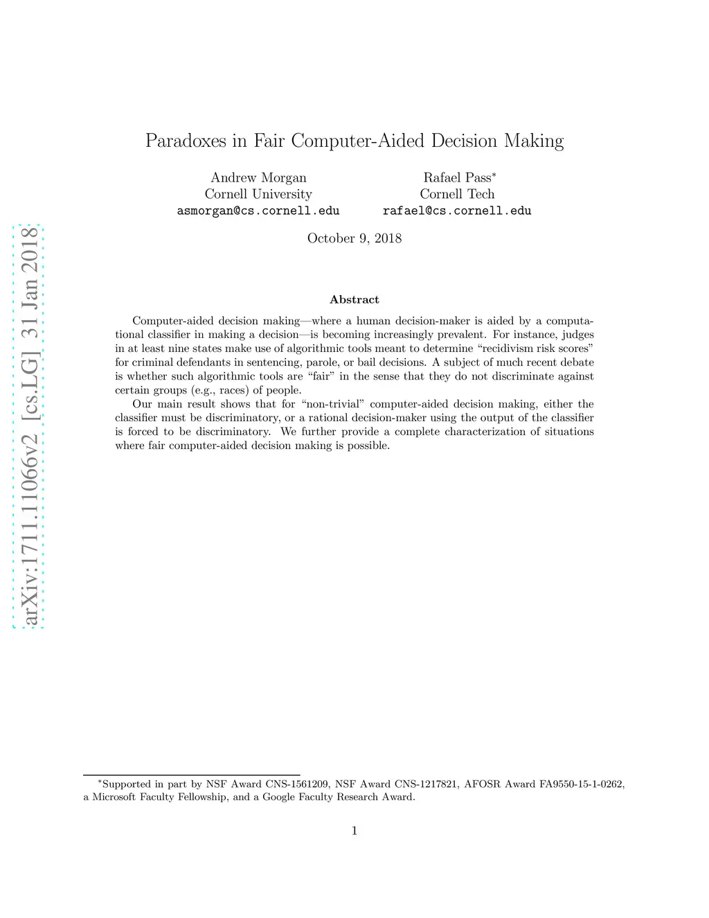 Computer-aided decision making--where a human decision-maker is aided by a computational classifier in making a decision--is becoming increasingly prevalent. For instance, judges in at least nine states make use of algorithmic tools meant to determine "recidivism risk scores" for criminal defendants in sentencing, parole, or bail decisions. A subject of much recent debate is whether such algorithmic tools are "fair" in the sense that they do not discriminate against certain groups (e.g., races) of people. Our main result shows that for "non-trivial" computer-aided decision making, either the classifier must be discriminatory, or a rational decision-maker using the output of the classifier is forced to be discriminatory. We further provide a complete characterization of situations where fair computer-aided decision making is possible.