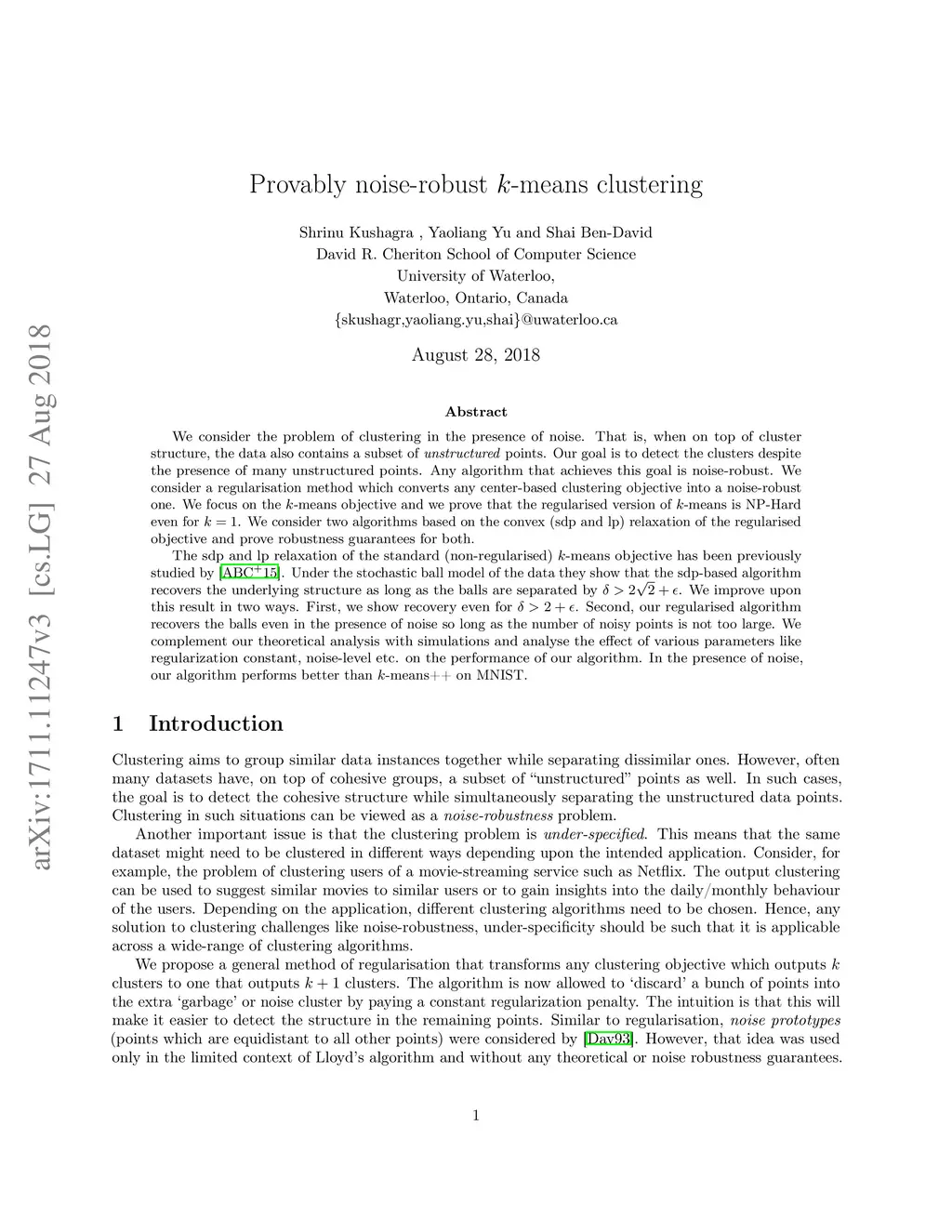 Provably noise-robust, regularised -means clustering