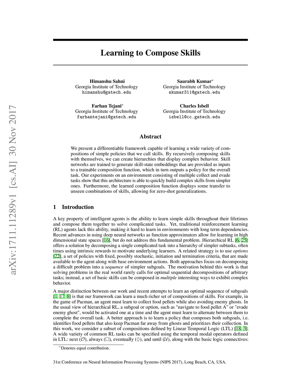 Learning to Compose Skills