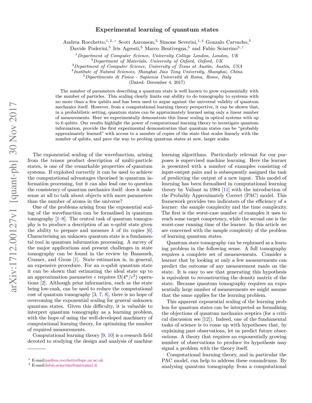 The number of parameters describing a quantum state is well known to grow exponentially with the number of particles. This scaling clearly limits our ability to do tomography to systems with no more than a few qubits and has been used to argue against the universal validity of quantum mechanics itself. However, from a computational learning theory perspective, it can be shown that, in a probabilistic setting, quantum states can be approximately learned using only a linear number of measurements. Here we experimentally demonstrate this linear scaling in optical systems with up to 6 qubits. Our results highlight the power of computational learning theory to investigate quantum information, provide the first experimental demonstration that quantum states can be "probably approximately learned" with access to a number of copies of the state that scales linearly with the number of qubits, and pave the way to probing quantum states at new, larger scales.