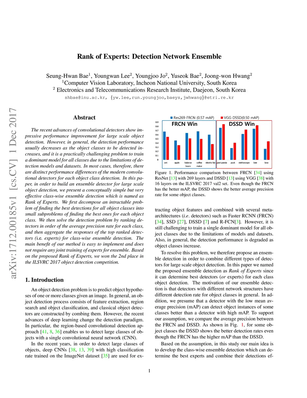 The recent advances of convolutional detectors show impressive performance improvement for large scale object detection. However, in general, the detection performance usually decreases as the object classes to be detected increases, and it is a practically challenging problem to train a dominant model for all classes due to the limitations of detection models and datasets. In most cases, therefore, there are distinct performance differences of the modern convolutional detectors for each object class detection. In this paper, in order to build an ensemble detector for large scale object detection, we present a conceptually simple but very effective class-wise ensemble detection which is named as Rank of Experts. We first decompose an intractable problem of finding the best detections for all object classes into small subproblems of finding the best ones for each object class. We then solve the detection problem by ranking detectors in order of the average precision rate for each class, and then aggregate the responses of the top ranked detectors (i.e. experts) for class-wise ensemble detection. The main benefit of our method is easy to implement and does not require any joint training of experts for ensemble. Based on the proposed Rank of Experts, we won the 2nd place in the ILSVRC 2017 object detection competition.