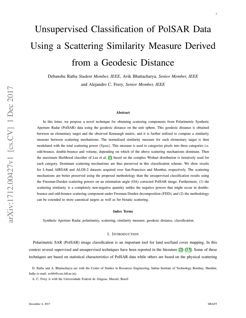 Unsupervised Classification of PolSAR Data Using a Scattering Similarity