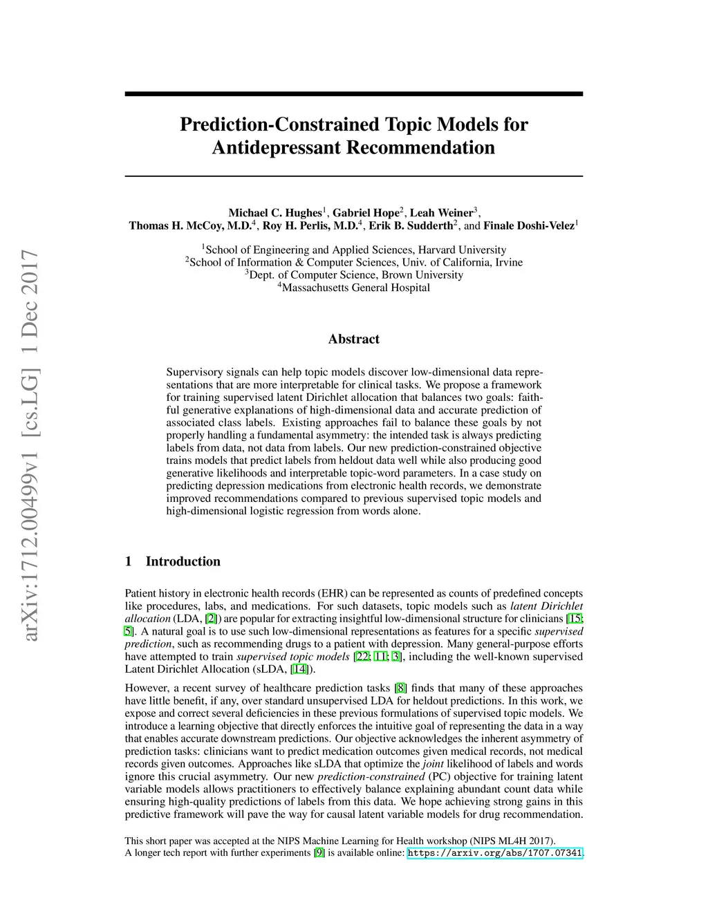 Supervisory signals can help topic models discover low-dimensional data representations that are more interpretable for clinical tasks. We propose a framework for training supervised latent Dirichlet allocation that balances two goals: faithful generative explanations of high-dimensional data and accurate prediction of associated class labels. Existing approaches fail to balance these goals by not properly handling a fundamental asymmetry: the intended task is always predicting labels from data, not data from labels. Our new prediction-constrained objective trains models that predict labels from heldout data well while also producing good generative likelihoods and interpretable topic-word parameters. In a case study on predicting depression medications from electronic health records, we demonstrate improved recommendations compared to previous supervised topic models and high- dimensional logistic regression from words alone.