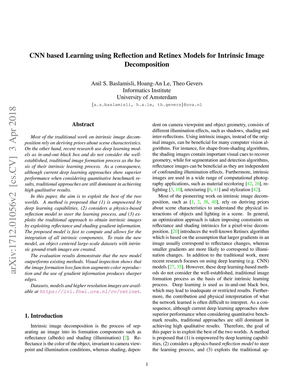 CNN based Learning using Reflection and Retinex Models for Intrinsic