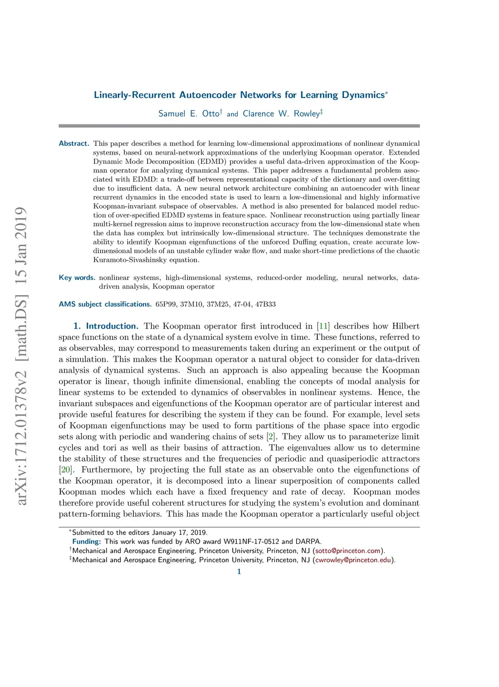 Linearly-Recurrent Autoencoder Networks for Learning Dynamics