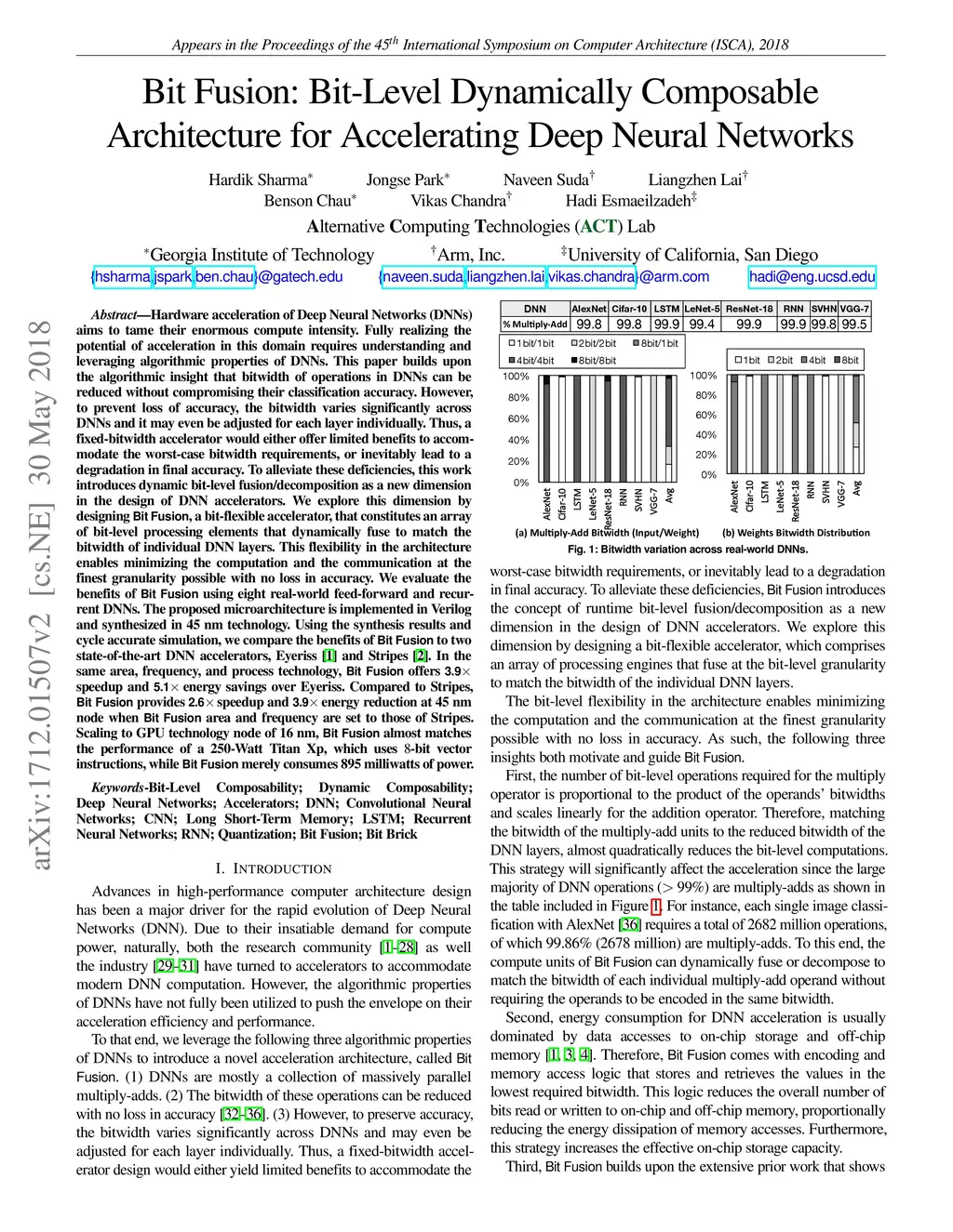 Bit Fusion: Bit-Level Dynamically Composable Architecture for