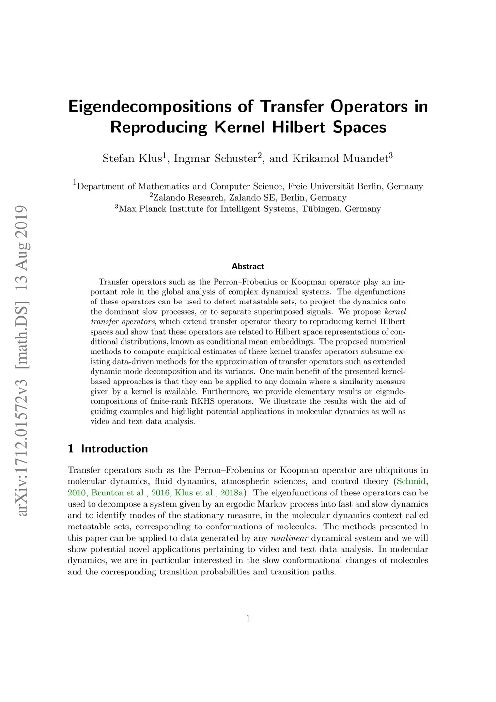 Eigendecompositions of Transfer Operators in Reproducing Kernel Hilbert
