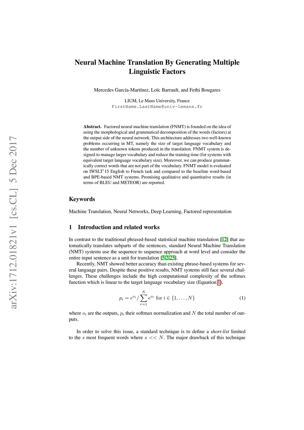 Neural Machine Translation by Generating Multiple Linguistic Factors