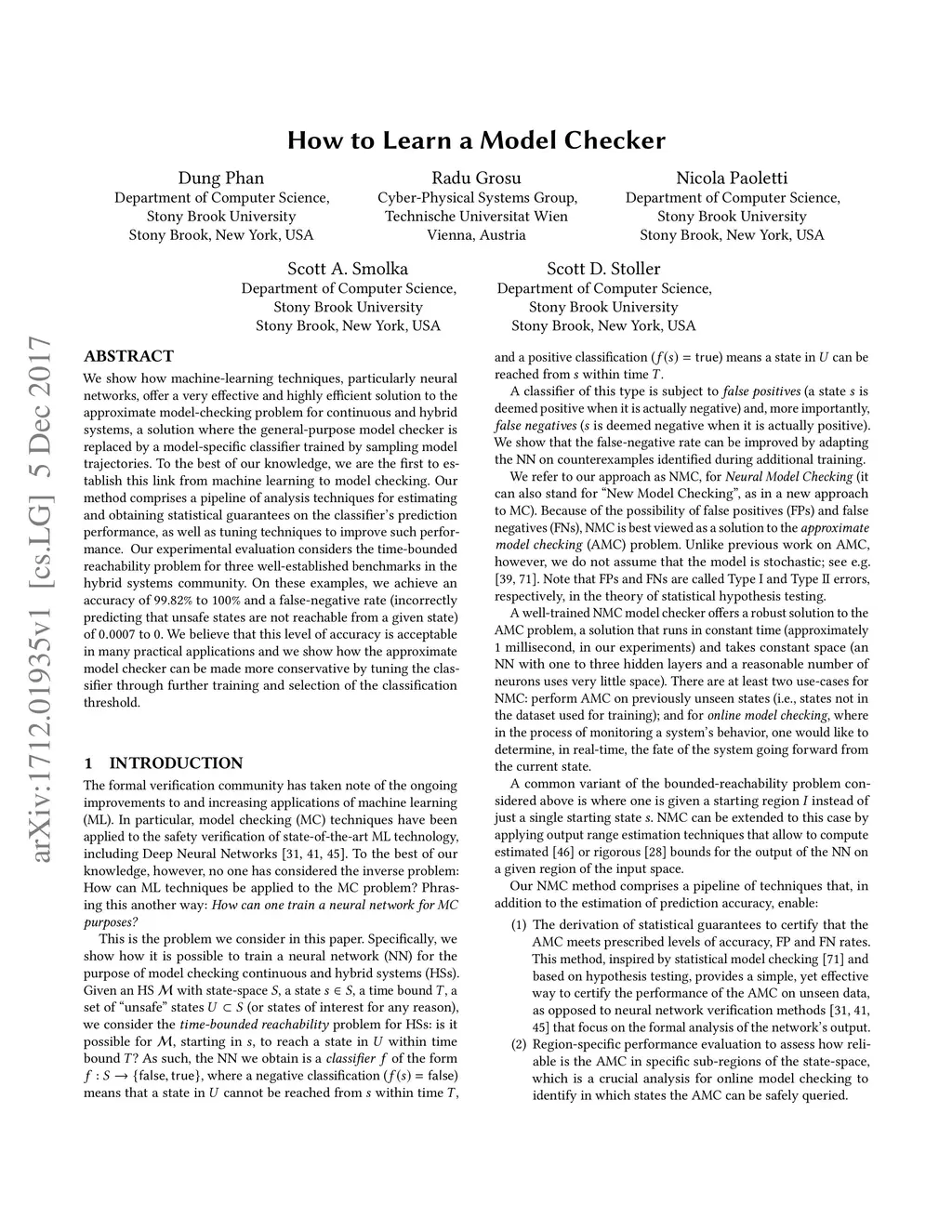 We show how machine-learning techniques, particularly neural networks, offer a very effective and highly efficient solution to the approximate model-checking problem for continuous and hybrid systems, a solution where the general-purpose model checker is replaced by a model-specific classifier trained by sampling model trajectories. To the best of our knowledge, we are the first to establish this link from machine learning to model checking. Our method comprises a pipeline of analysis techniques for estimating and obtaining statistical guarantees on the classifier's prediction performance, as well as tuning techniques to improve such performance. Our experimental evaluation considers the time-bounded reachability problem for three well-established benchmarks in the hybrid systems community. On these examples, we achieve an accuracy of 99.82% to 100% and a false-negative rate (incorrectly predicting that unsafe states are not reachable from a given state) of 0.0007 to 0. We believe that this level of accuracy is acceptable in many practical applications and we show how the approximate model checker can be made more conservative by tuning the classifier through further training and selection of the classification threshold.