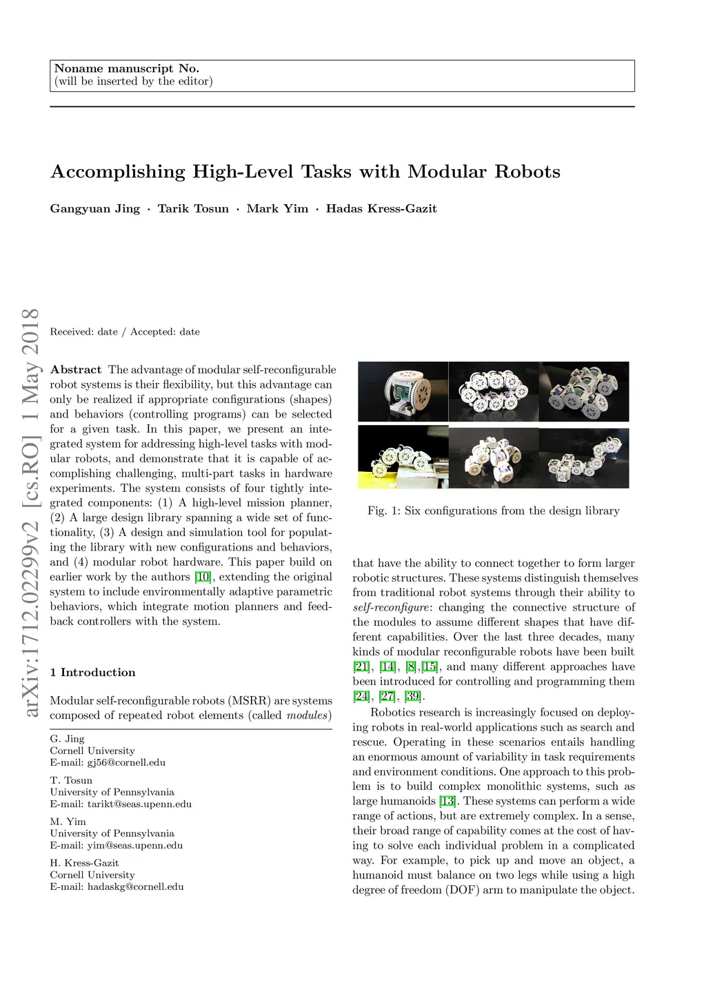 The advantage of modular self-reconfigurable robot systems is their flexibility, but this advantage can only be realized if appropriate configurations (shapes) and behaviors (controlling programs) can be selected for a given task. In this paper, we present an integrated system for addressing high-level tasks with modular robots, and demonstrate that it is capable of accomplishing challenging, multi-part tasks in hardware experiments. The system consists of four tightly integrated components: (1) A high-level mission planner, (2) A large design library spanning a wide set of functionality, (3) A design and simulation tool for populating the library with new configurations and behaviors, and (4) modular robot hardware. This paper builds on earlier work by the authors, extending the original system to include environmentally adaptive parametric behaviors, which integrate motion planners and feedback controllers with the system.