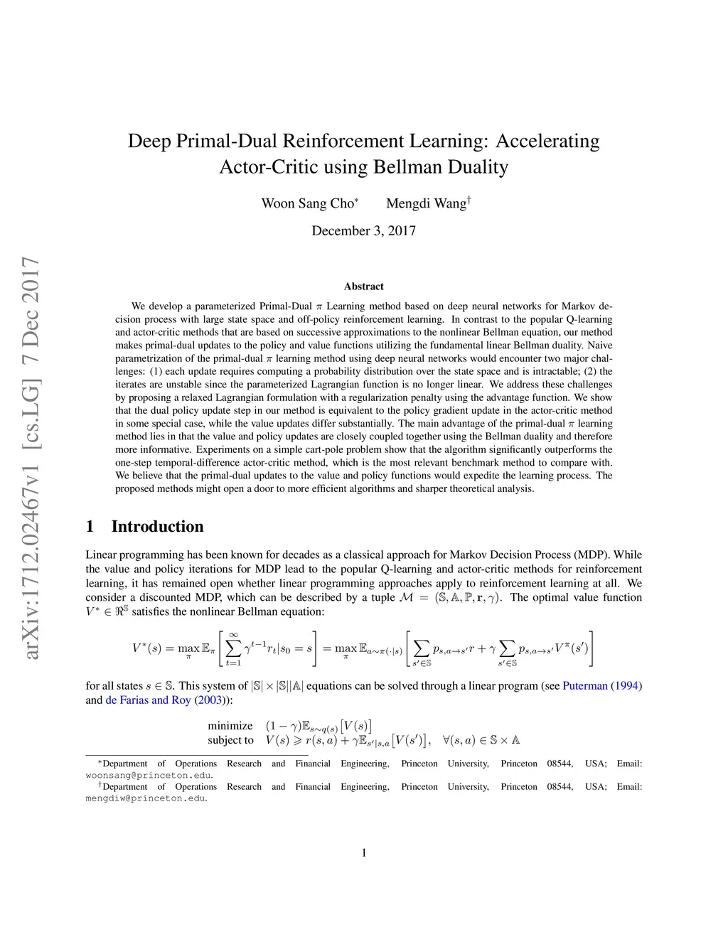 Deep Primal-Dual Reinforcement Learning: Accelerating Actor-Critic using
