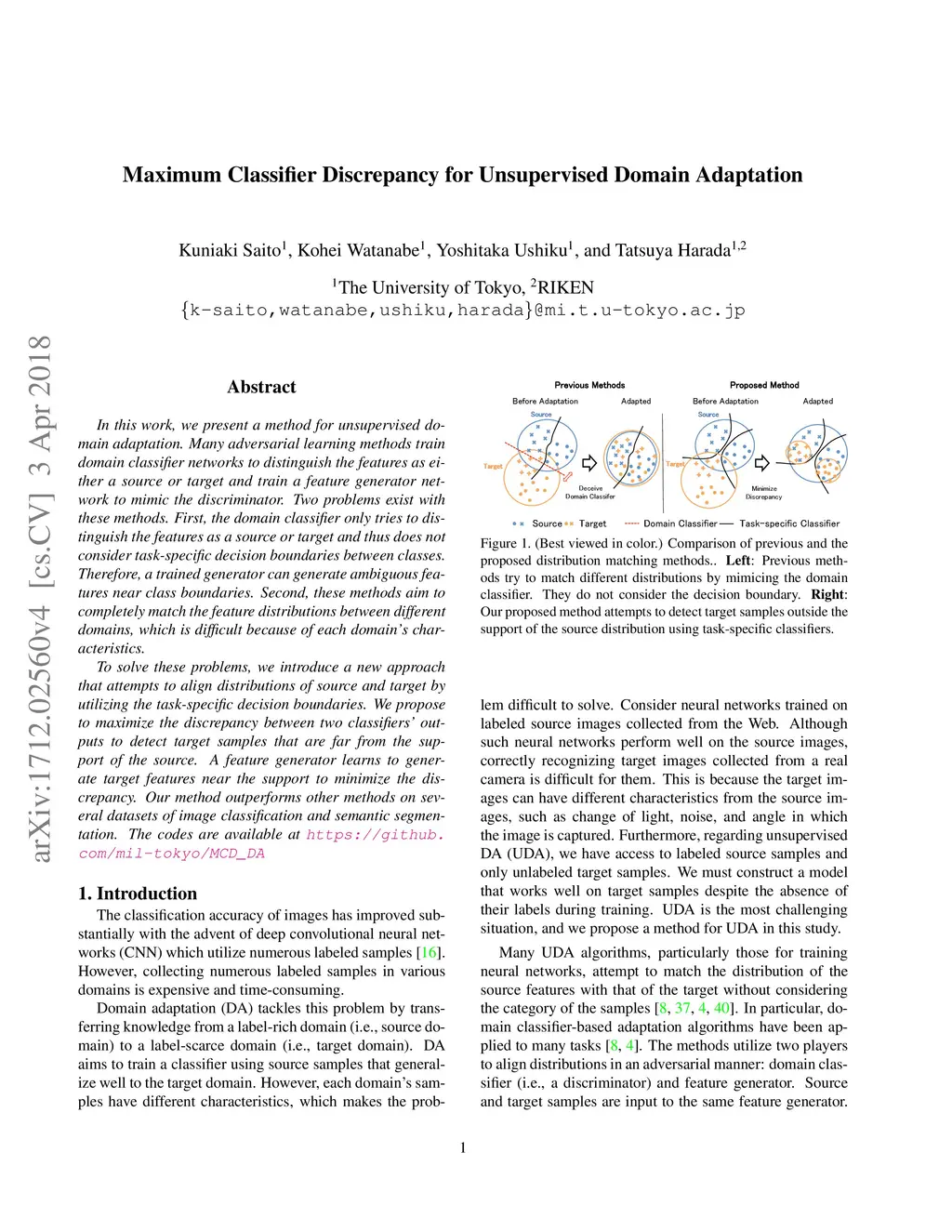 Maximum Classifier Discrepancy for Unsupervised Domain Adaptation
