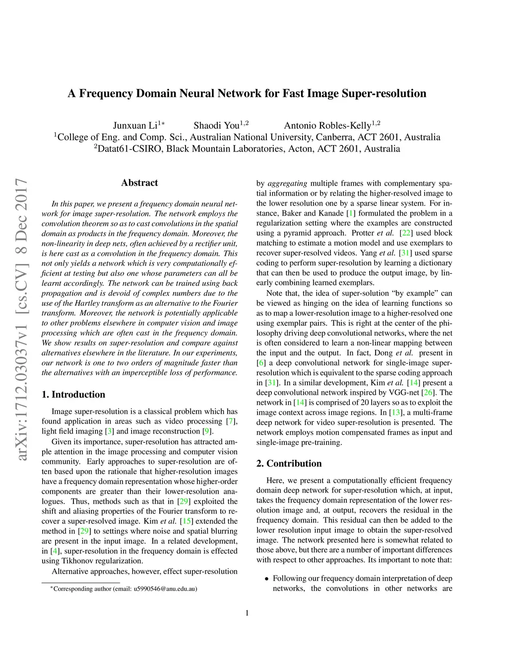 A Frequency Domain Neural Network for Fast Image Super-resolution